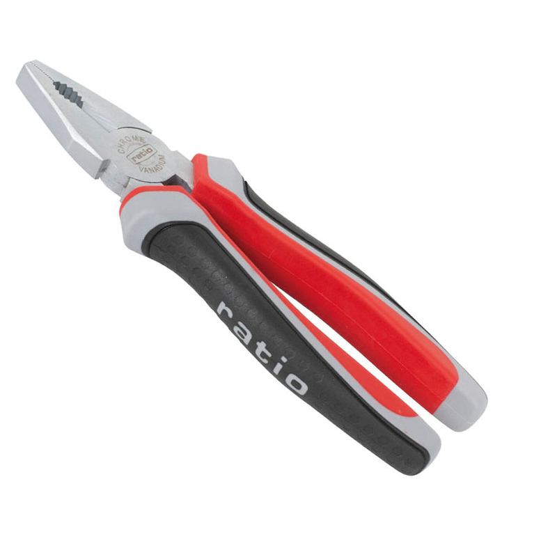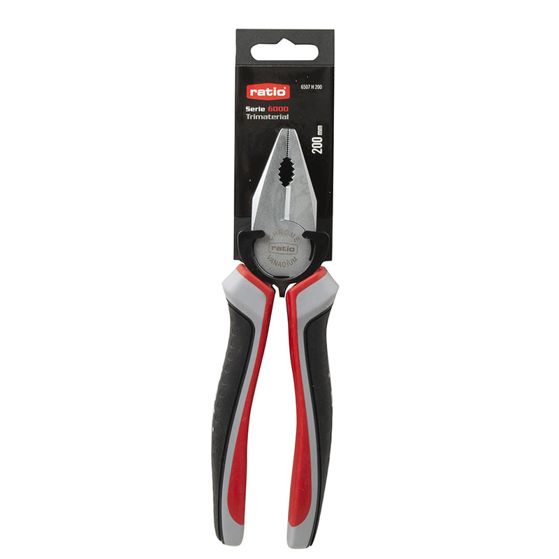El alicate RATIO de la Serie 6000, tiene un diseño práctico de fácil manejo, es idóneo para sujetar piezas y para moldear i/o cortar diferentes materiales. Está fabricado en acero cromo-vanadio satinado de gran calidad y resistencia y se le ha aplicado un tratamiento de inducción en las zonas de corte que garantiza un resultado óptimo. El mango es de bimaterial antideslizante lo que asegura el agarre y la seguridad. Disponible en varios diseños y varias medidas.