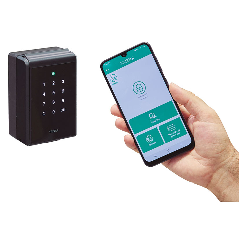 Esta caja de seguridad de 80x55xh.120 mm, el cuerpo está fabricado en metal con cubierta de caucho y pantalla frontal táctil. Para su instalación dispone de 4 agujeros en la parte trasera para colgarla en la pared (incluye tornillos y tacos de fijación). Resulta idónea para guardar llaves o tarjetas que permitan el acceso a viviendas de alquiler, locales de uso compartido o vehículos, ya quepermite generar y gestionar en remoto a través de app, ilimitados códigos de apertura temporal.
