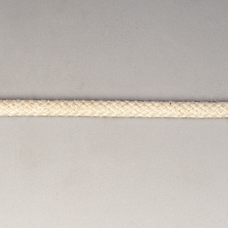 Cuerda de algodón trenzado de color blanco. Es suave al tacto y tiene buena capacidad de agarre, además los nudos no se deshacen. Se presenta en bobina de 25 metros de longitud y 8 mm de diámetro.