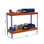 Mesa de trabajo metálica y de montaje sin tornillos de 2 estantes y 900x1500x750mms.
