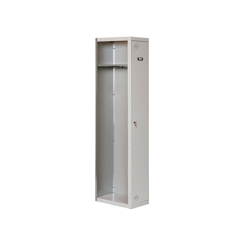 Taquilla metálica de 1 cuerpo con 1 puertas de color gris. Las dimensiones son 1800x300x500 mms. Se entrega desmontado e incluye un estante, perchero, una cerradura, respiradero y etiquetero para mayor comodidad del usuario. Se monta de forma fácil siguiendo las instrucciones o viendo el vídeo de montaje en Youtube. Es el módulo adicional y necesita uno inicial donde asociarse.