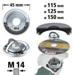 Esta tuerca de fijación rápida con rosca universal M14 es la solución ideal para asegurar herramientas de forma rápida, eficiente y sin la necesidad de herramientas adicionales. Con un diseño ergonómico y de fácil manejo, permite ajustar y aflojar accesorios en segundos, optimizando el tiempo de trabajo y brindando máxima seguridad en cada uso. Dispone de una palanca abatible que queda encajada de forma segura en la posición de 0° y de 90°.